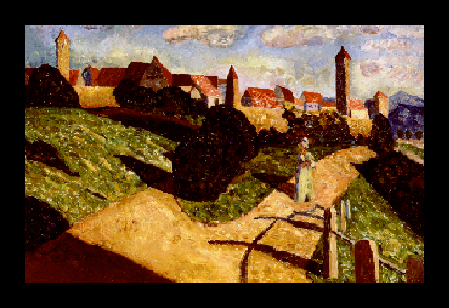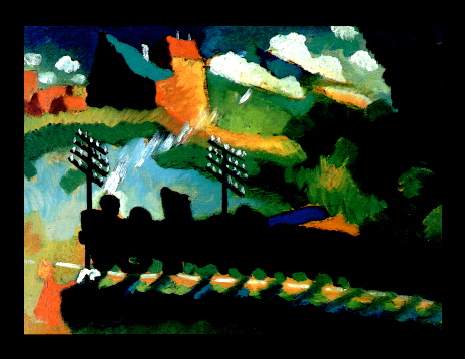 "Alte Stadt" (Old City) 1902; Musée National d'Art Moderne, Centre Georges Pompidou, Paris, France. Eisenbahn bei Mürnau (Railroad At Murnau) 1909; Lenbachhaus, München, Deutschland. "Mürnau mit Kirche" (Murnau With Church) 1910; Lenbachhaus, München, Deutschland.